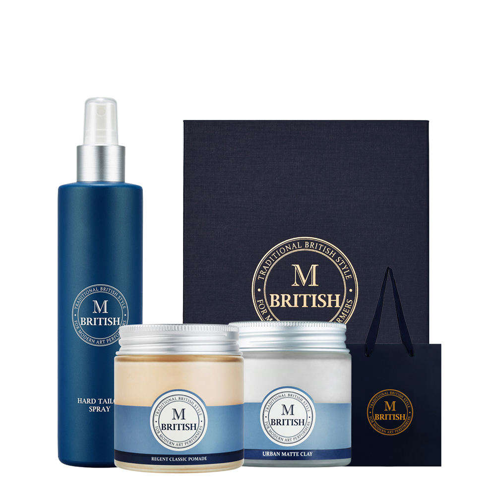 브리티시엠 맨즈 스타일링 선물세트(왁스100g 2종 + 스프레이250ml 1종)